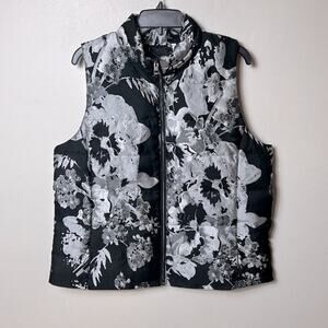 NWT Chico’s black and silver metallic jacquard puffer vest, XL