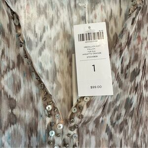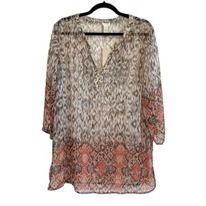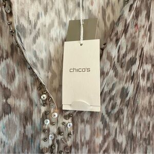 NWT Chico’s embellished semi sheer v-neck tunic 3/4 sleeves super cute patterned printer boho bohemian top