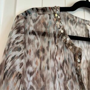 NWT Chico’s embellished semi sheer v-neck tunic 3/4 sleeves super cute pattern