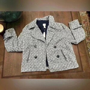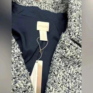 Beautiful tweed blue blazer has some silver sparkle in the material