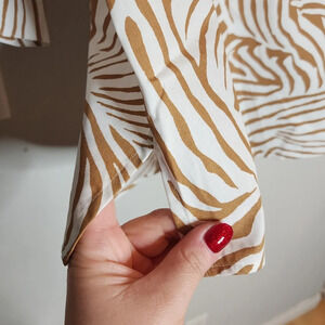 NWT Chico's popover 3/4 sleeve brown zebra cotton shirt. Size 3. XL