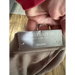 New with tags Chico’s size 2R US 12 beige faux suede leggings. The front is faux suede and the back is a different material. Waist is 16” across. Inseam is 27” and rise is 11”.