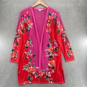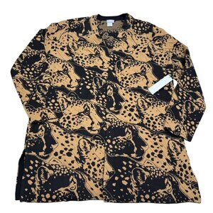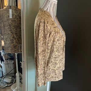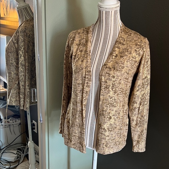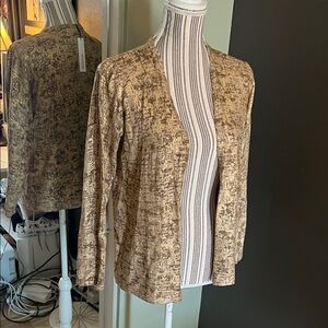 NWT. Chico's, size Small, Foil Print Cardigan Textured Brown Lightweight Sweater