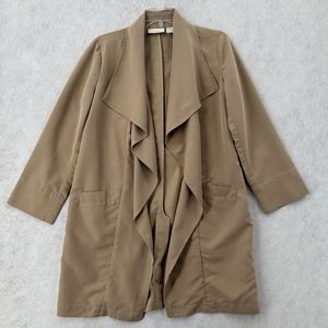 Elegant Chico's blazer with a textured brown design. Perfect for layering. Adds sophistication to any outfit.