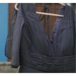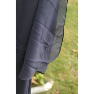NWT size 16 formal chiffon gown from Make You Pretty More Gown Gallery. Definitely a choice for the Mother of the Bride or the Groom, a second wedding, or for the new bride who wants to do it differently. Great for any formal occasion including New Years Eve. Dusky purple makes this idea of fall or winter events. Floor-length sheath with a slit with asymmetrical chiffon drape, V neck, and ruched waist. Tie across the back shoulders for an interesting focal point from behind! Tags mark this as a wedding dress. V neckline is 13" from should to point, with 3" between point and the waistband. Back zipper is 13" Measurements: 45" skirt length with a 28" slit. 19" waist. This gown even has hidden pockets.