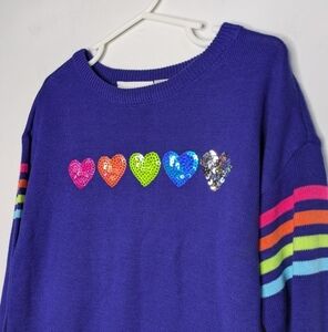 NWT Children's Place Blue Rainbow Striped Sequin Heart Sweater Dress 5/6. Color is electric violet but looks more blue.