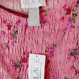 NWT Children's Place Girls XXL Size 16 Dress Pink Red Floral Smocked Babydoll