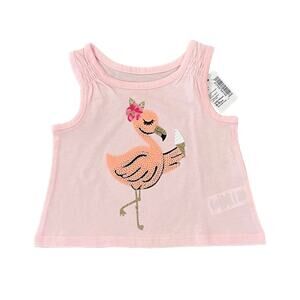 NWT Children's Place Pink W/Sequin Flamingo Graphic Tank & Shorts Outfit - 6-9M