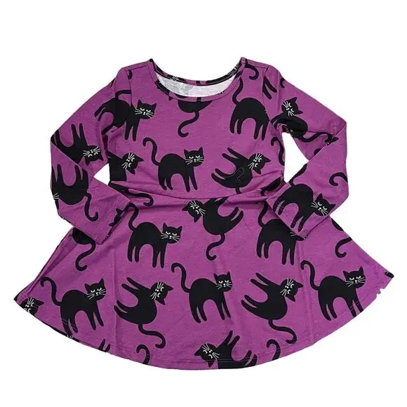NWT Children's Place Purple W/Black Halloween Cat Skater Dress