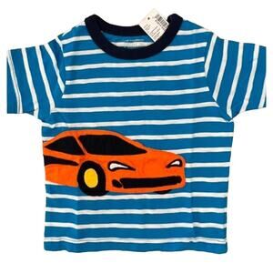 NEW WITH TAGS - This Children's Place Blue Stripe Car Tee is Made of 100% cotton slub jersey, colors turquoise, white and orange, Allover stripes, Contrast rib-knit crew neck, Embroidered car design at front and back, Tagless label, Pre-washed for added softness and to reduce shrinkage