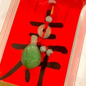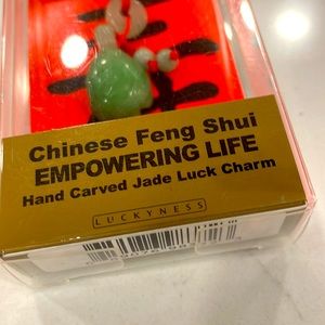 NWT Chinese Feng Shui Empowering Life Jade Charm. Hand Crafted Jade Luck Charm. Measurement is just for the charm itself. Never opened so I’m not sure how long hanger is.