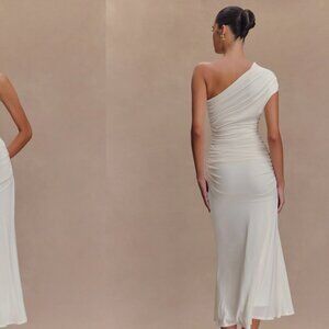 Chloe Peached Jersey One Shoulder Midi Dress - Ivory Size Small purchased from Meshki. Fits like a glove, super flattering, selling due to missing the return policy return date.