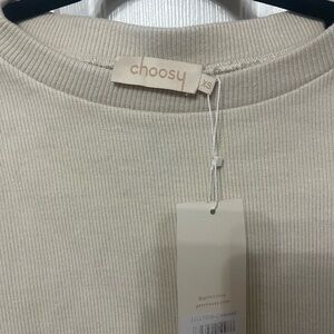NWT Choosy Elsa Cream Ribbed Boxy Cropped Sweater Slit Bell Sleeves SZ XS
