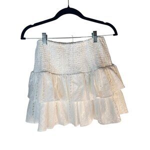 NWT Choosy Eyelet 6 Smocked Waist Tiered Lace Skirt White