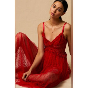 NWT Choosy Red Lace Swiss Dot Maxi Dress 12 Built in Shorts Romantic Sexy Date
