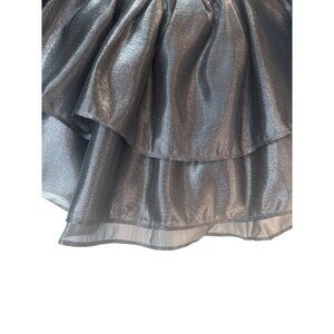 off shoulder top, ruffle blouse, layered crop top, metallic silver, gunmetal, charcoal gray, shimmer finish, organza fabric, sheer lightweight, voluminous sleeves, flowy relaxed fit, statement piece, chic stylish, trendy elegant, cocktail party, evening wear, night out, fashion-forward, bold modern, spring summer, festive attire, unique contemporary, off shoulder top, ruffle crop top, Choosy clothing, evening wear, party top, black crop top, stylish outfit, summer fashion, modern design, elegant ruffles, women's small, polyester spandex blend, holiday, anniversary, birthday