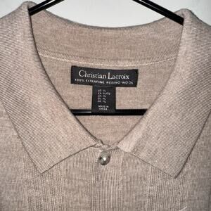 NWT Christian Lacroix Wool Knit Short Sleeve Button Up Brown Polo Shirt Men’s XL
