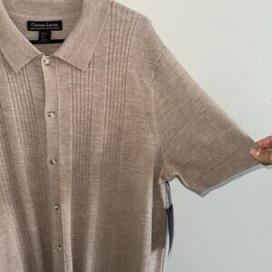 NWT Christian Lacroix Wool Knit Short Sleeve Button Up Brown Polo Shirt Men’s XL