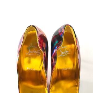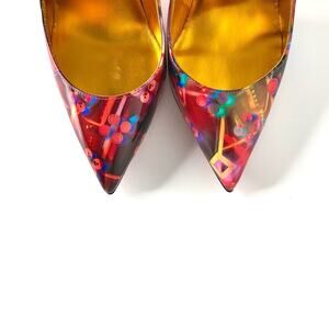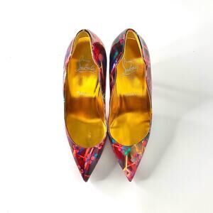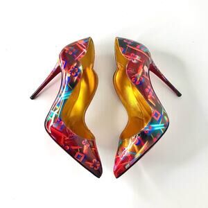 Brand new, never worn vibrant multicolor design Louboutins. Signature red sole. Elegant pointed toe. High stiletto heel. These run 1/2 size small or I wouldn’t be selling them— they are a statement and conversation piece.! Perfect to dress up any outfit this summer.