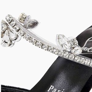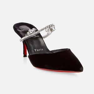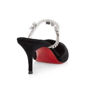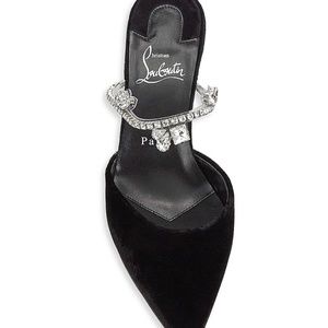 NWT Christian Louboutin Planet Queen 70 Suede Crystal-Embellished Mules