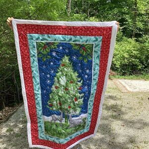 NWT. Christmas Forest Tree with Deer Lap Quilt Hand Crafted