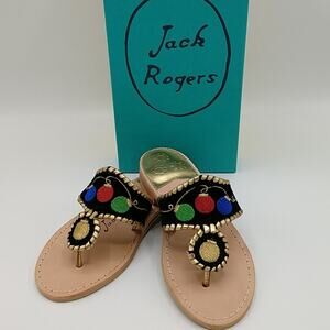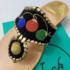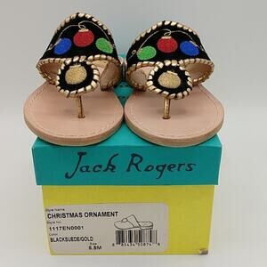 NWT Christmas Ornament Embroidered Suede Sandals by Jack Rogers size 5 1/2 Black