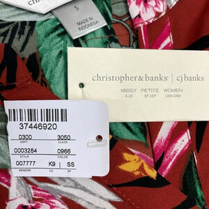 NWT Christopher & Banks 3/4 Sleeve Asymmetrical Hem Tropical Print Top in size S. Excellent new condition. Lightweight, notched v-neckline, rounded hem with front side asymmetrical hem, rolled sleeve with button and tab. Please see photos for approximate measurements and details. Item may show difference in color based upon photography and perception. Photos are part of the description, as everyone’s level of condition may vary. From smoke free and pet free home. All packages are shipped the same or next business day.
