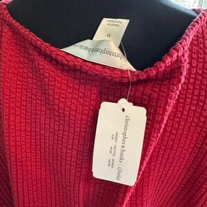 New with tags Christopher & Banks red textured top, size Medium. Super comfy with a boxy fit, square neckline, and adjustable hem tie—perfect for summer BBQs, 4th of July style, or adding a pop of red to any outfit.