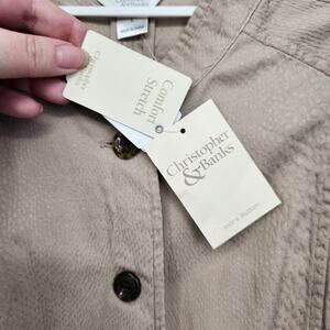 NWT Christopher & Banks Tan Minimalist Button Down Blazer Jacket Women's L