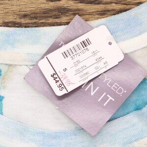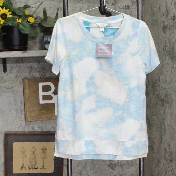 NWT Christopher & Banks Womens French Terry Short Sleeve Shirt 1574 S Blue Multi