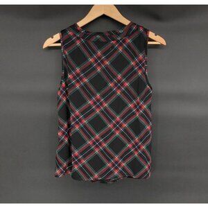 NWT Christopher & Banks Womens Sleeveless Plaid Blouse P/S Dark Academia Preppy