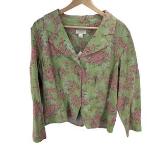 NWT Christopher & Banks linen Pink Floral Patterned blazer Jacket large NEW