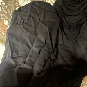 Self 1: 100% silkSelf 2: 97% viscose, 3% spandex. Made in China. Dry clean only. Unlined. Exposed back zipper closure. Sheer tulle fabric. Garment is intentionally sheer, undergarments will show through.Please note undergarment not included. Light pilling.