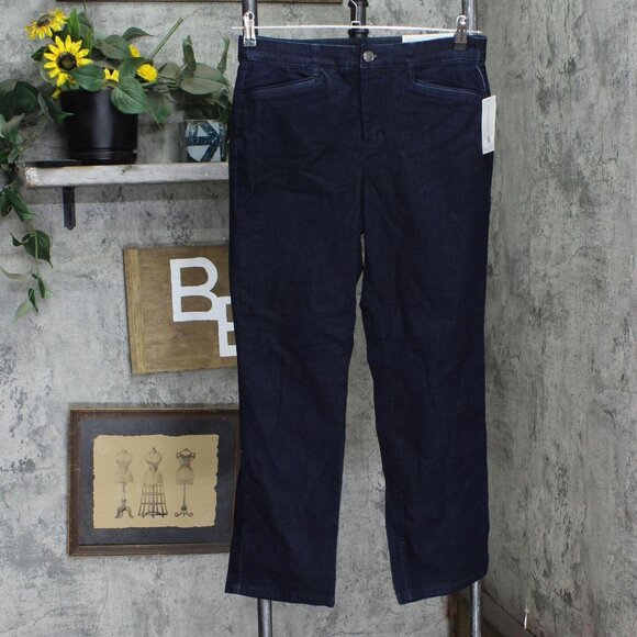 NWT Christopher and Banks Fit High Rise Denim Trousers 9300 4 Short Dark Blue