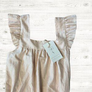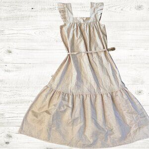 NWT Christy dawn dress linen pink and cream flutter sleeveless tie wrap XS