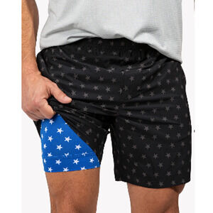 NWT Chubbies Men's The Danger Zones 7" Sport Shorts Black Stars/American Flag Liner Size L
