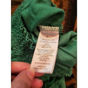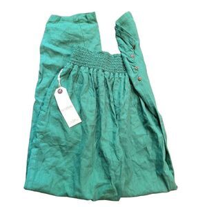 NWT Ci Sono Linen Pants Smocked Waist Pull On Kelly Green Women's XS
