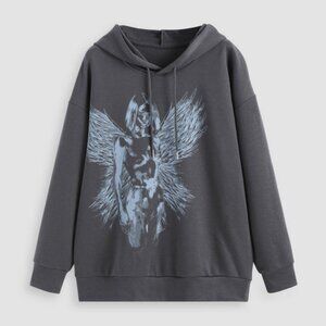Brand new with tags, in original packaging. Cider Oversized Angel Hoodie in size L. Cool dark gray with cool light blue angel graphic print. Drawstrings Hoodie, bouclé inner, long sleeves. Dropped shoulders.