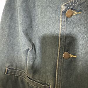 This new blue denim jumpsuit has the cider green wash over it, which gives it the look and feel of aged denim, even though it is a brand new item. New condition, no holes, no rips, no damage.