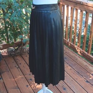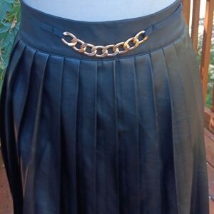 NEW. Faux leather skirt. Knife pleats. Wide zip. Chain embellished. Size M measures 28 at waist, 38 at hips with pleats flat. 28 long from waistband. Dark academic, whimsical Goth inspired. Imagine with boots or heels.