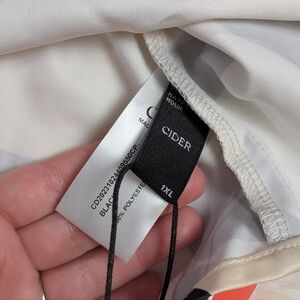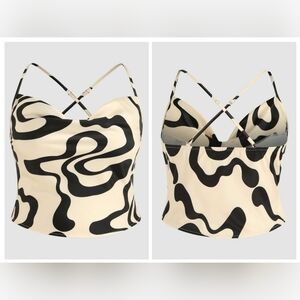 Women, Woman, Women's, Cider, NWT, New With Tags, New, Cropped, Crop, Camisole, Cami, Tank Top, Cowl Neck, Satin, Draped Front, Black, White, Cream, Ivory, Abstract, Abstract Print, Striped, Stripes, Stripe, Funky, Plus Size, Plus Sized, Size 1XL, Size 1X, Size XL, Polyester, Date Night, Party, Clubbing, Club, Night Out