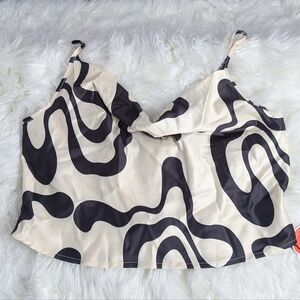 NWT Cider Satin Cowl Neck Abstract Retro Stripe Cropped Cami Top Plus Size 1X