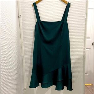 NWT Cider Satin Mini Dress Green Double-Ruffle Size 4XL