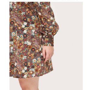 NWT Cider Woman's Retro Quilt Corduroy Floral Mini Dress Sz L