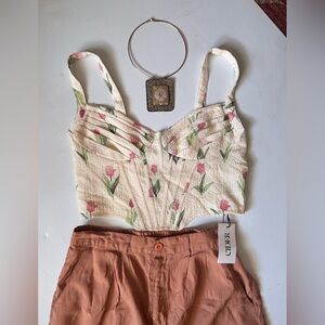 NWT Cider floral cropped corset top with zipper and elastic back #corsettop #cottagecore #fairy #hippie