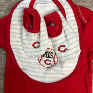 NWT Cincinnati Reds Infant Layette Set Bodysuit Bib Booties Unisex Red 6-9 Month