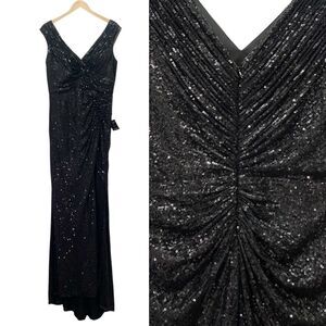 NWT Cinderella Divine Long Sequin Cap Sleeve Formal Dress Gown in Black Size XL
