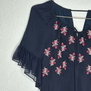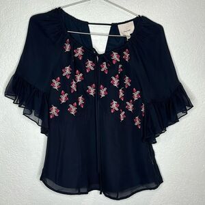 NWT Cinq A Sept Daria Split Neck Silk Blouse Navy Blue Small
