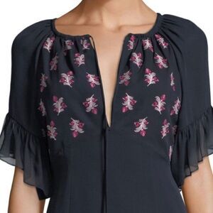CINQ A SEPT Daria Split-Neck Silk Blouse with Floral-Embroidery