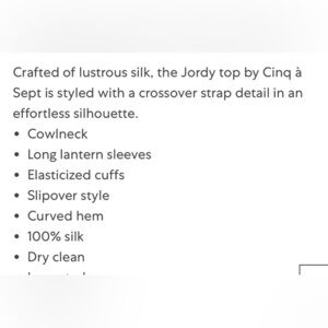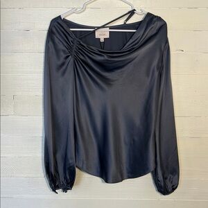 NWT Cinq A Sept Jordy cowlneck 100% silk shirt, blue, women’s size medium. Long sleeve, elastic at wrist. Partial tags.